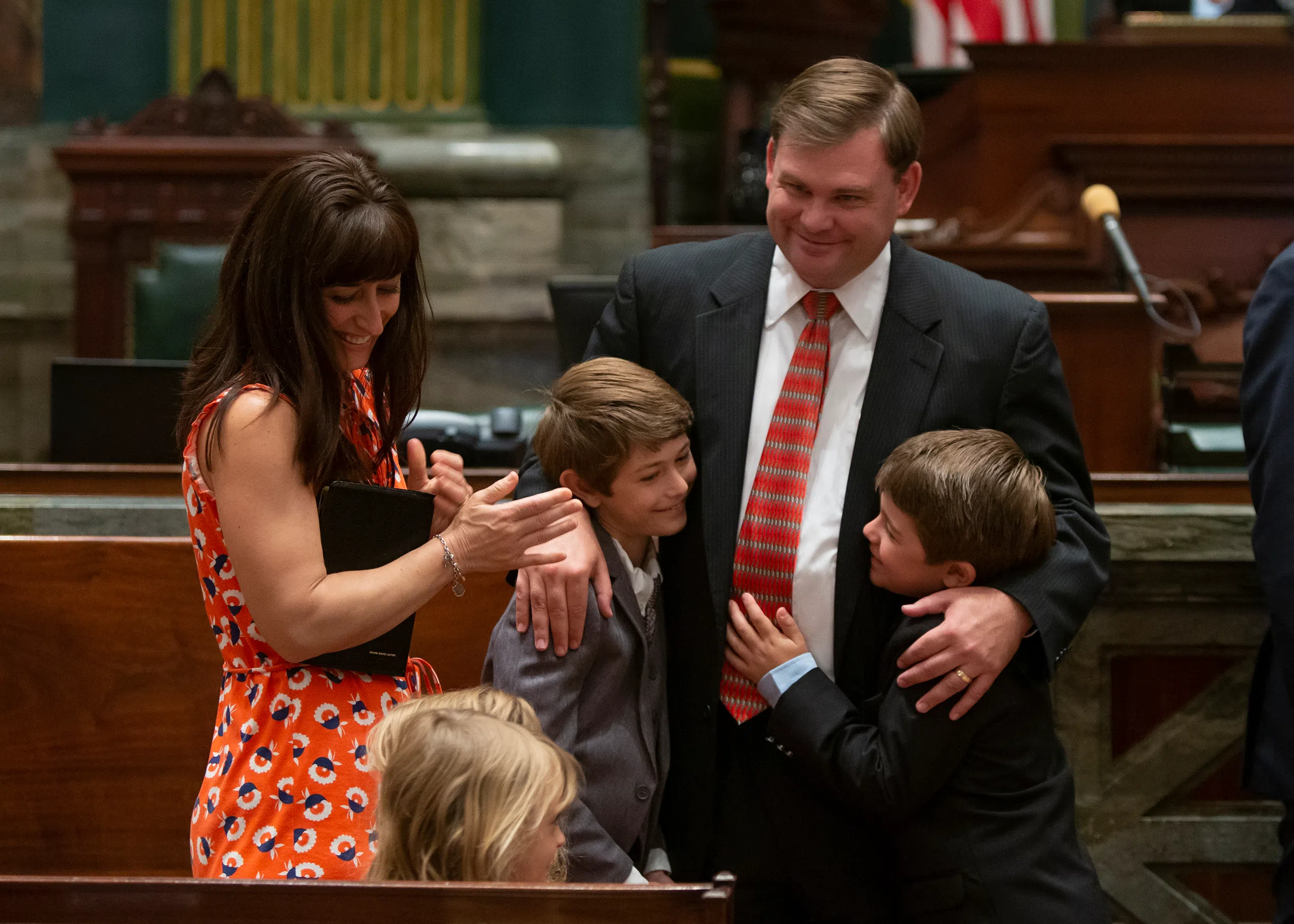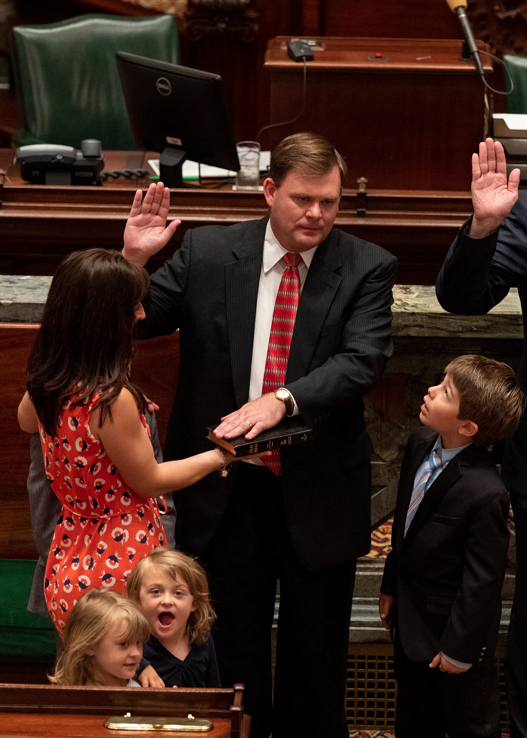With his wife holding the Bible and his four children at his side, Pittman became the 41st District senator, replacing his former boss, Senator Don White, who retired in February.