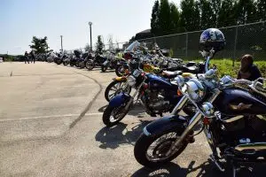 (Motorcycles lined up ready for the run. Photo by Kris Mellinger)