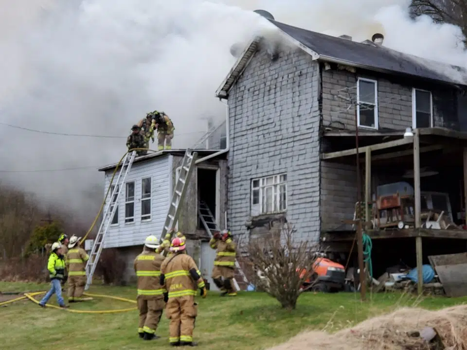 Indiana County 911 reported the first call went out at 8:05 Sunday morning for Creekside, Indiana, Marion Center, Clymer, Plumville and Elderton fire departments for the house fire at 207 Fulton Lane near Creekside. Creekside fire chief Cody Hitchings said that when they arrived, fire was already visible through the second story windows, and he called for a second alarm to double the manpower on-scene. He reported that the second floor of the home was gutted and areas of the first floor took on mild to heavy water and smoke damage.