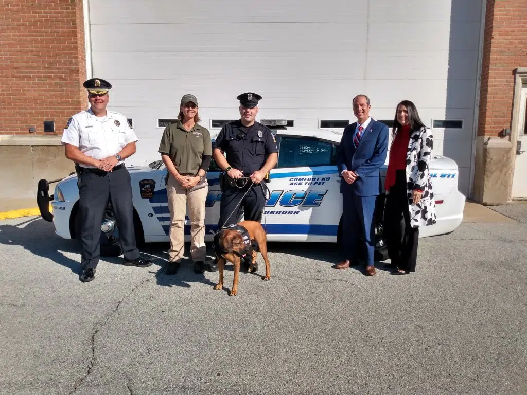 Today, Indiana Borough Police unveiled their latest upgrade to their Comfort K-9 Program with one of their police cars being fitted to be a comfort K-9 vehicle.
