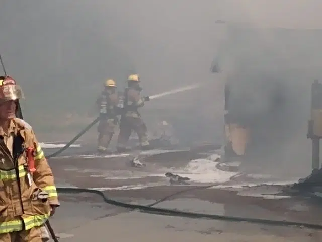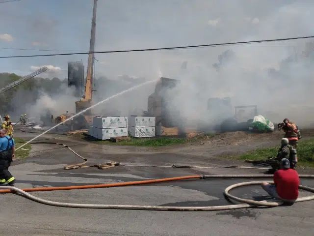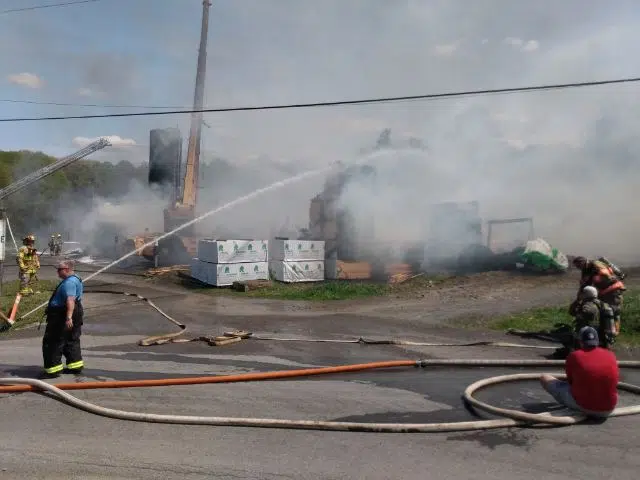 Everyone that was in the building at the time was able to get out and no injuries have been reported, however the building, along with the lumber stock, is completely destroyed. Crews were able to control the fire around 4 p.m.