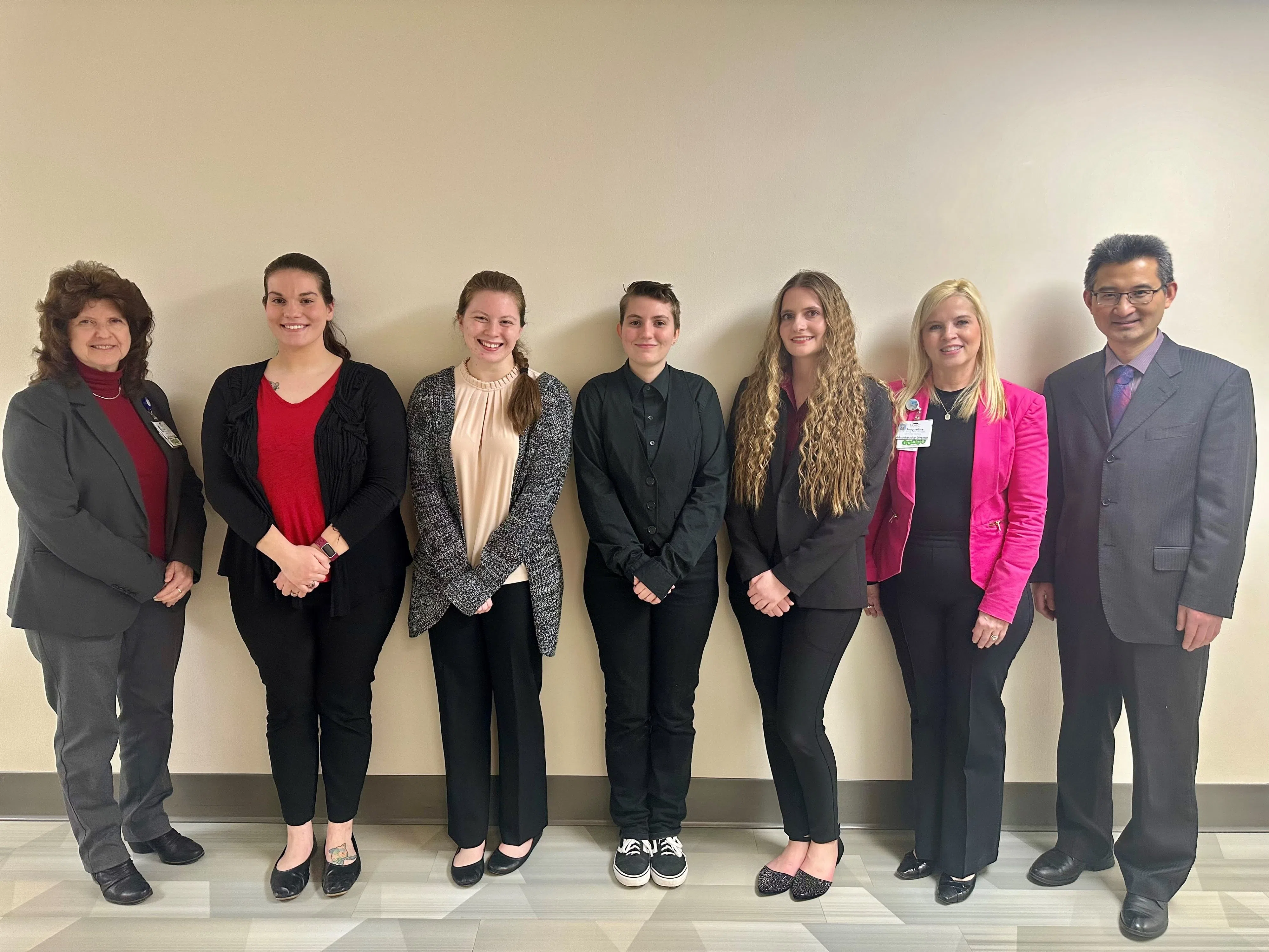 (From left, IRMC Medical Laboratory Science Program Director Christine Baum; students Anastasia Rabickow, Rebecca Hollobaugh, Sarah Stephenson, and Odessa Vallies; IRMC Administrative Laboratory Director Jackie Sansig; IUP Nursing and Allied Health faculty member and Coordinator of the IUP Medical Technology Program Dr. Lei Hao. Photo provided by IUP)