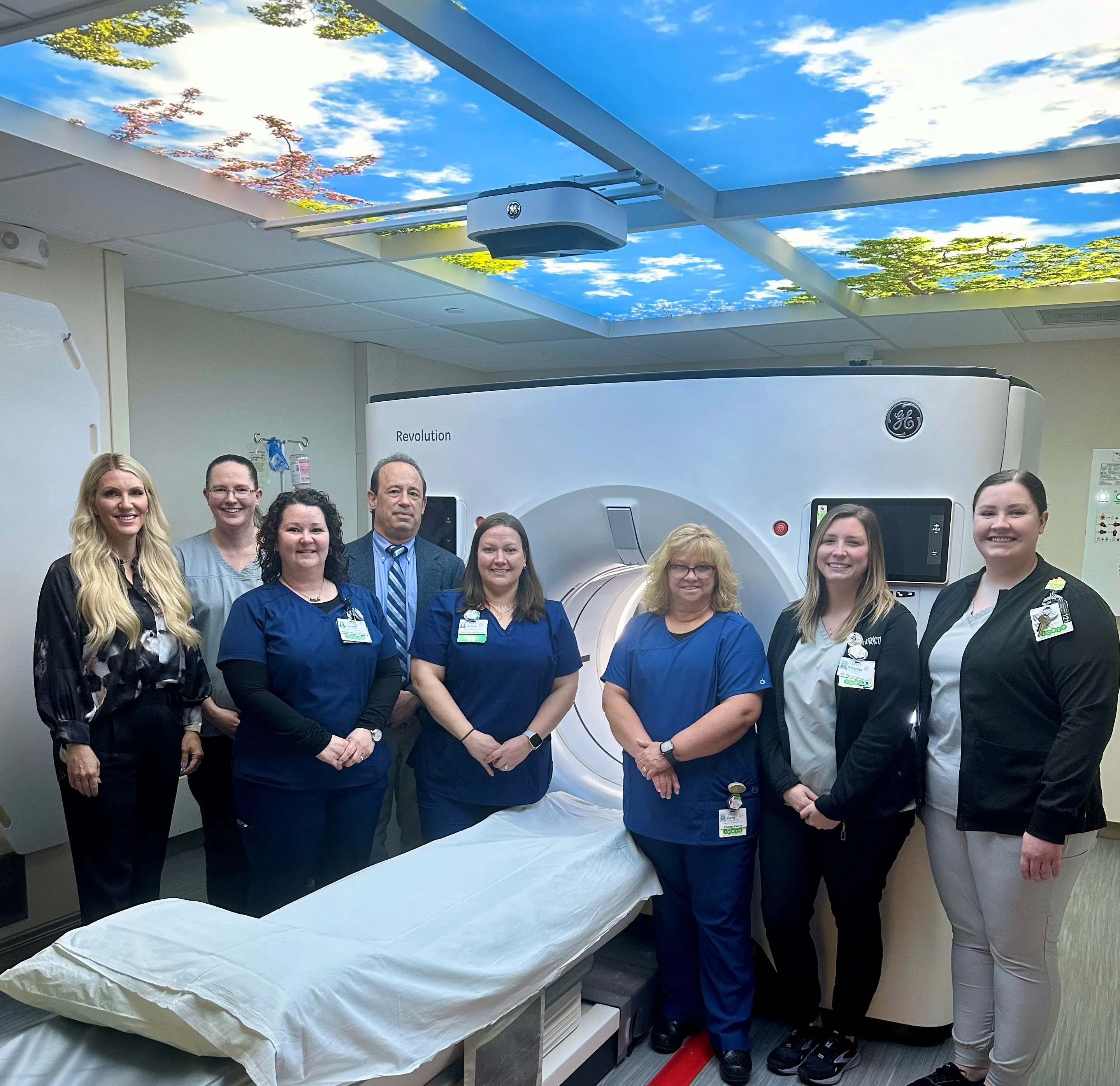 From L to R: Ashley Croft, MSN, NP, Heartflow Rep; Diana Keyser, Lead CT Technologist; Tammy Smulik, Diagnostic Imaging RN; Patrick Hickle, MD, FACC, cardiologist; Lindsey Houser, Diagnostic Imaging RN; Sherry Orsargos, Diagnostic Imaging RN; Amanda Oaks, CT Technologist; and Theresa Kochara, CT Tecnhologist.