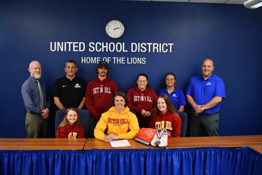 United Lions track and field standout Gaige Grassmyer signed Wednesday to compete in track and field at Seton Hill University.
