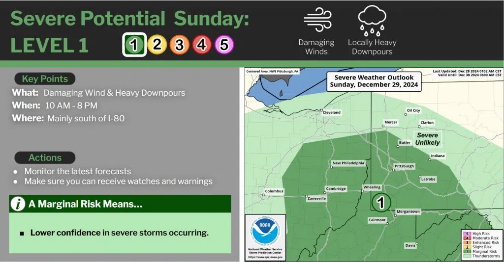 Storms are most likely between 10AM-8PM. Gusty winds and heavy downpours will be the primary threats.