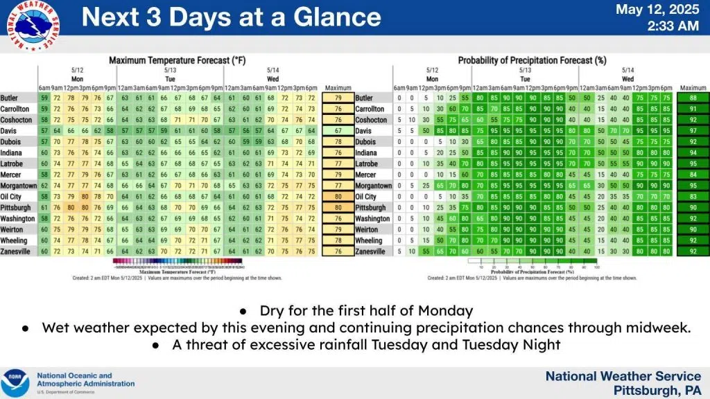A low is expected to creep north today. As it tracks north, showers and a few thunderstorms are expected to develop. This will keep a chance of precipitation in the forecast through midweek. There is a potential of excessive rainfall on Tuesday.