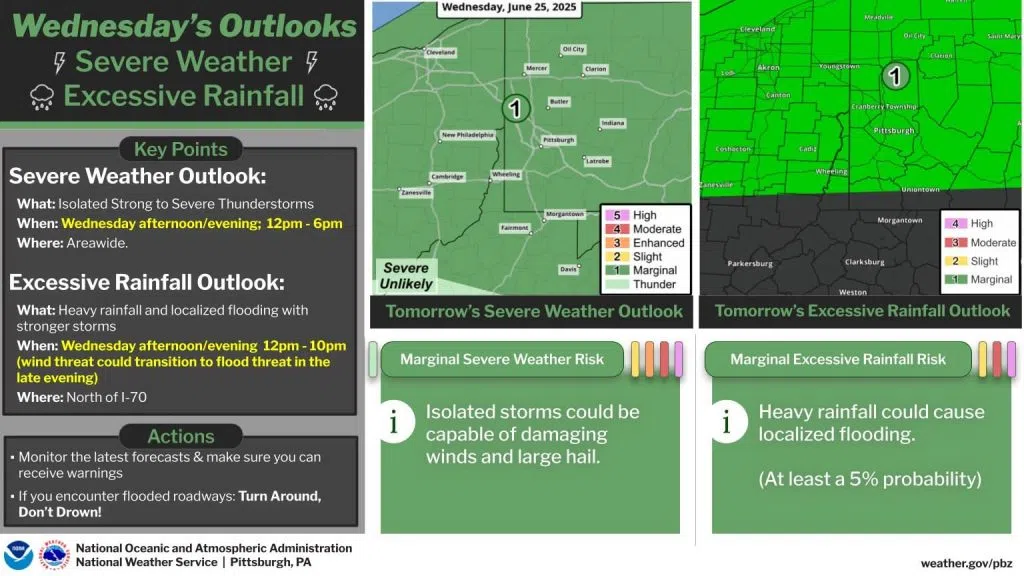 More showers and storms are expected tomorrow, mainly during the afternoon and evening, and again with the potential for damaging wind gusts and locally heavy rainfall.