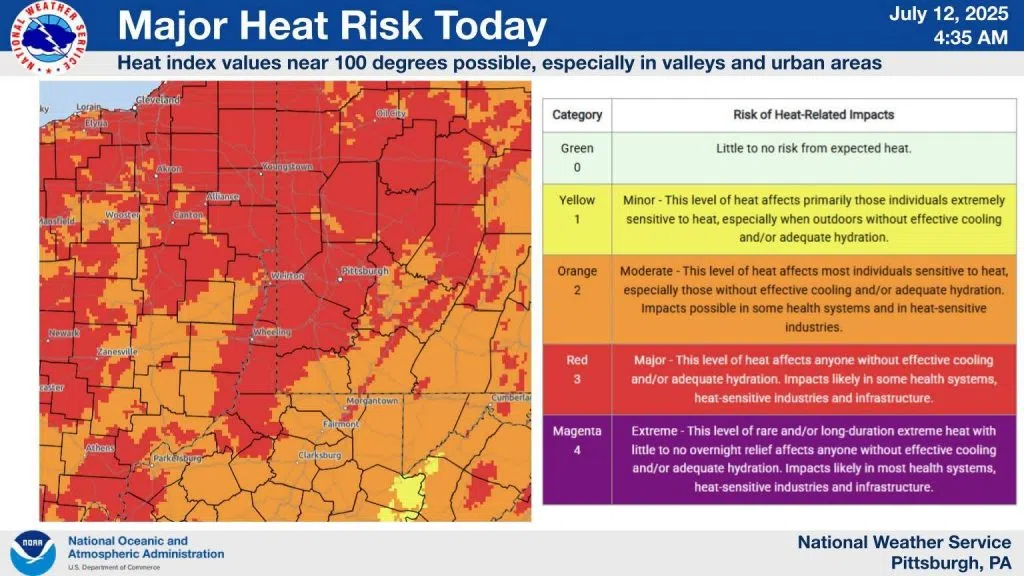 Today’s high temperatures are expected in the upper 80s to low 90s. Combined with dew points in the high 60s to low 70s, most areas will observe a heat index in the mid to upper 90s while valleys and urban areas could experience up to 100F.