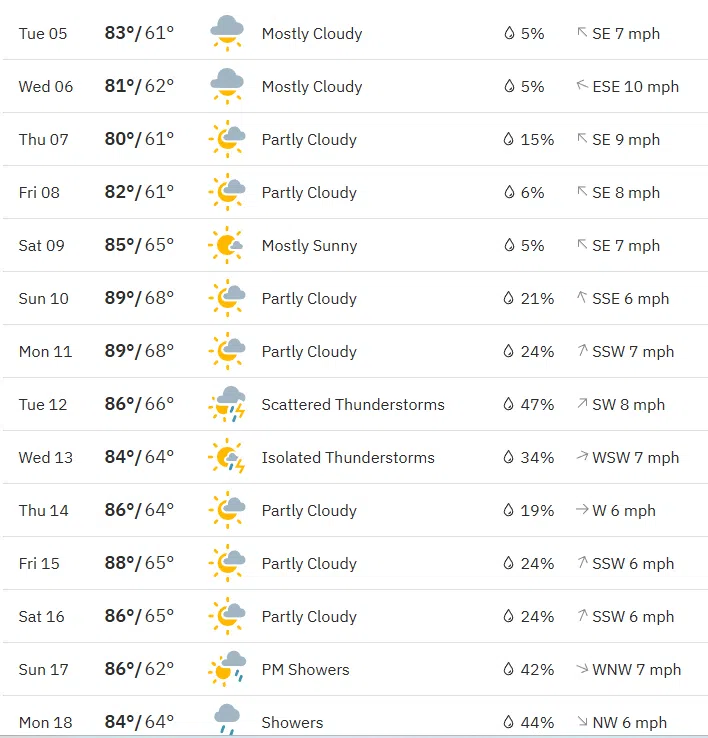 Try to imagine a whole week without rain in this year when it has rained so much. Well, you don’t have to imagine it. The best chance for rain in Indiana County this week appears to be Thursday.