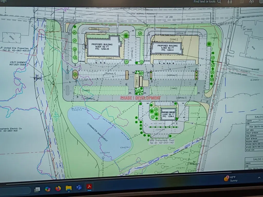 (Preliminary plans for Rustic Lodge/Roseann’s property on Oakland Avenue show possible multiple commercial properties. Photo by Josh Widdowson)