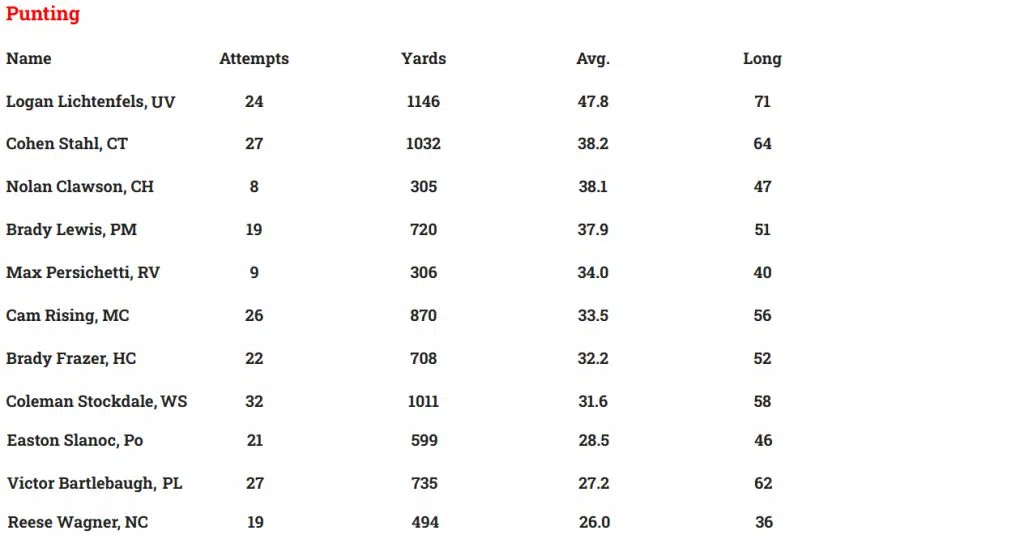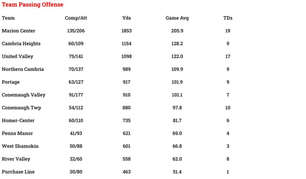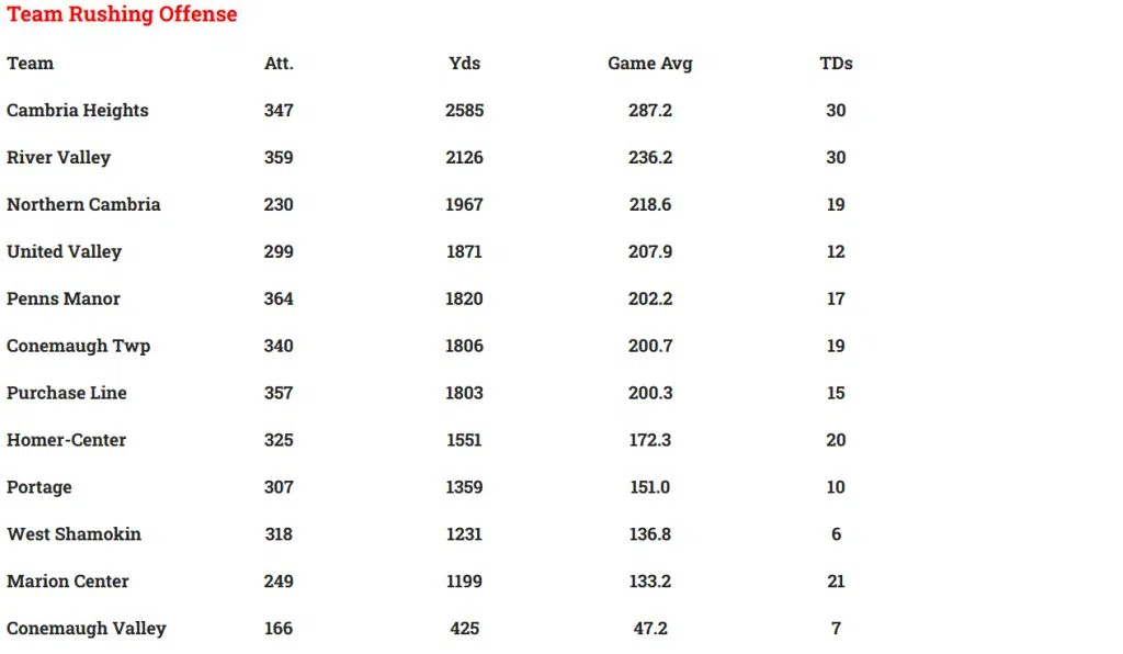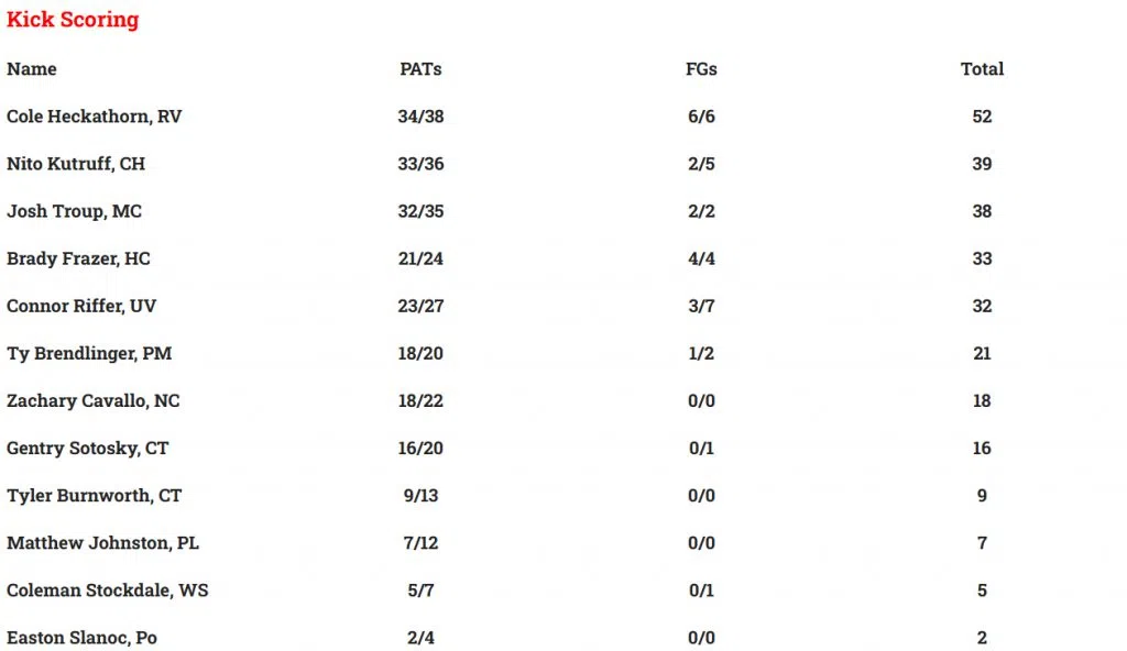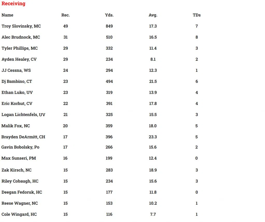 LOCAL HIGH SCHOOL FOOTBALL STATISTICAL LEADERS THROUGH WEEK 9