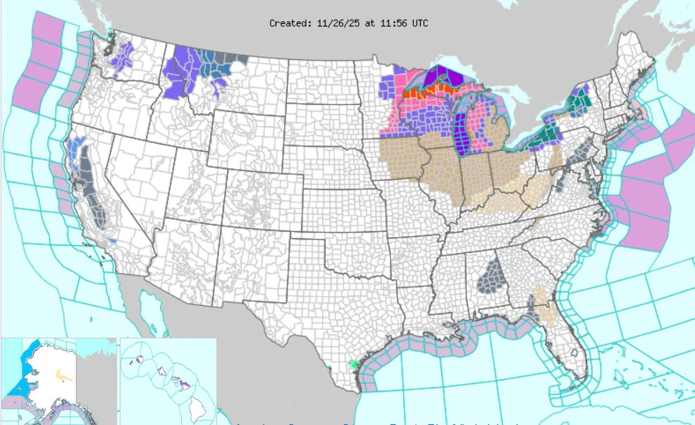 Winter weather alerts are being posted from Eastern Minnesota to Upstate New York today through Saturday.