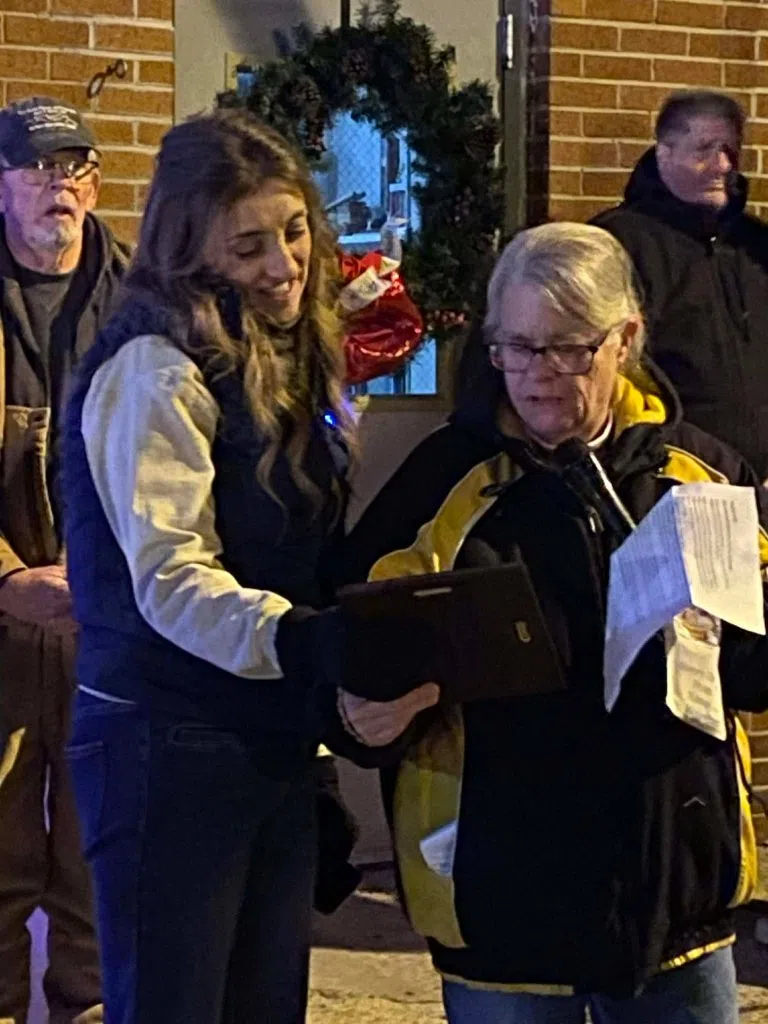 (Homer City Mayor Arlene Wanatosky awards Kristin Esposito with her plaque for Citizen of the Year 2025.)