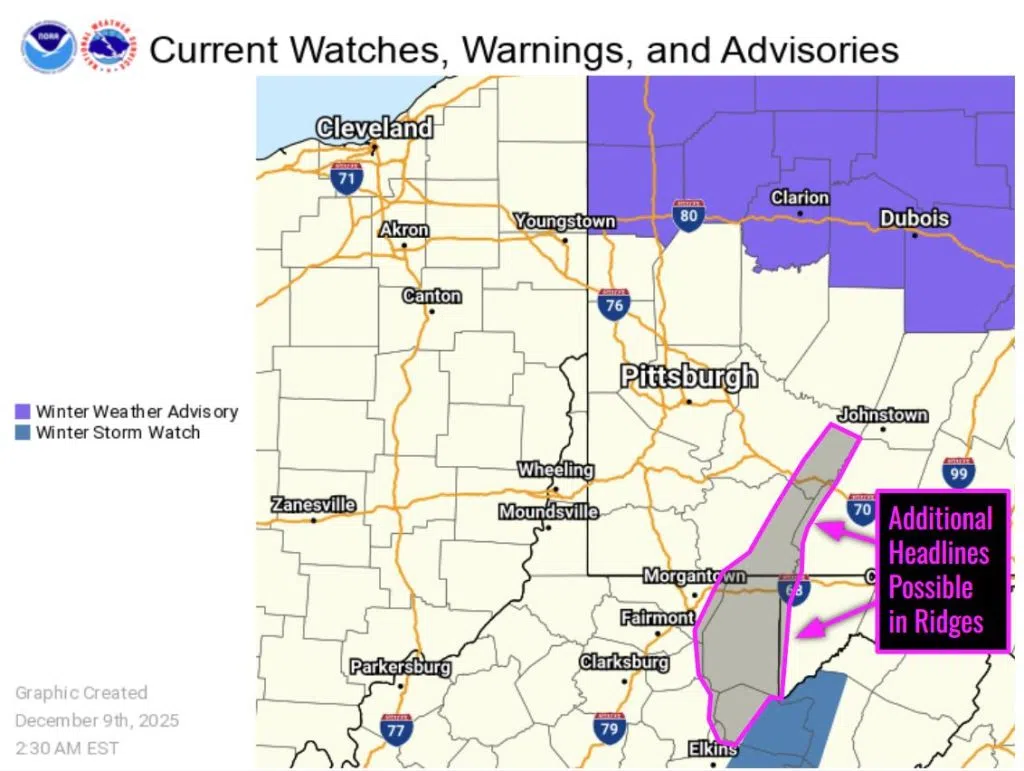 * Winter headlines possible for SW’rn PA and N’rn WV ridges.
