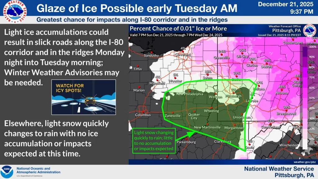 ICE POSSIBLE FOR TUESDAY MORNING