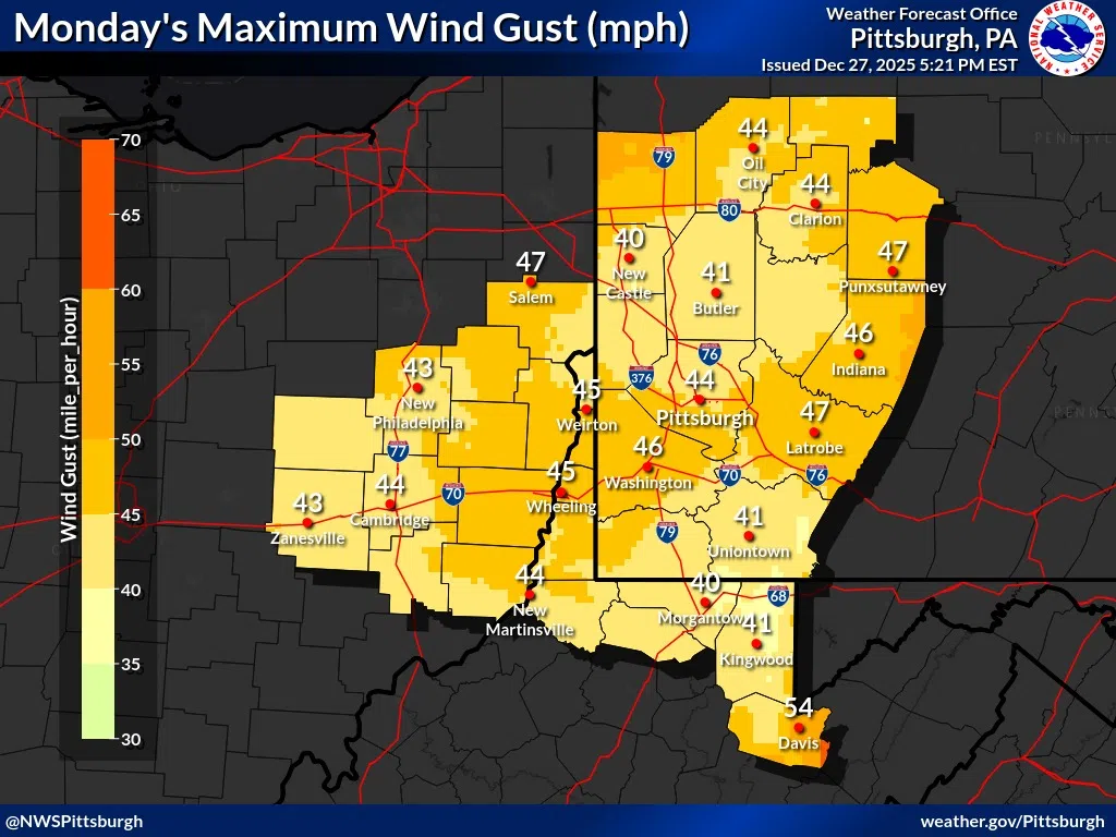 WIND GUSTS TO USHER IN COLD FRONT, TURNING RAIN TO SNOW MONDAY