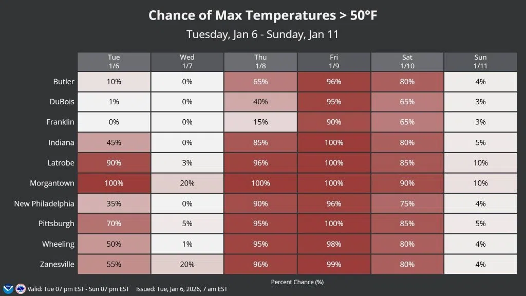 There will be a brief cool-down following the cold front passage tonight. By Thursday, temperatures are forecast to warm with highs likely to exceed 50°F across most of the region. These warmer temperatures are expected to persist through Saturday afternoon when a low pressure moves through the area bringing colder temperatures back.