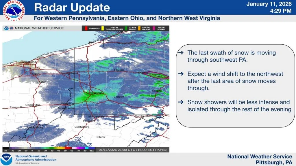 Here is a radar update to cover the rest of the evening. Expect a few instances of visibility below 3 miles but snow showers will be less intense through the rest of the evening.