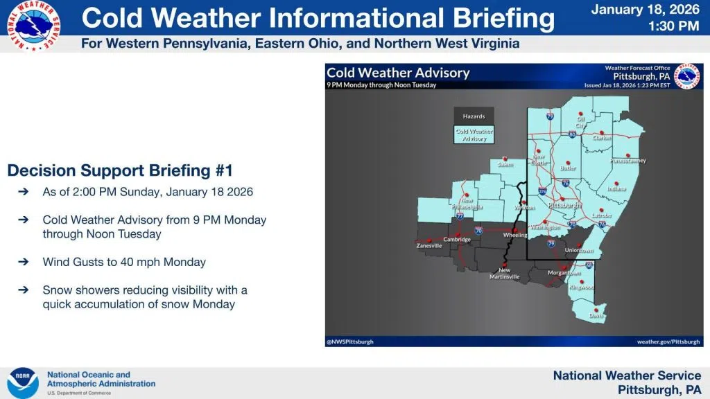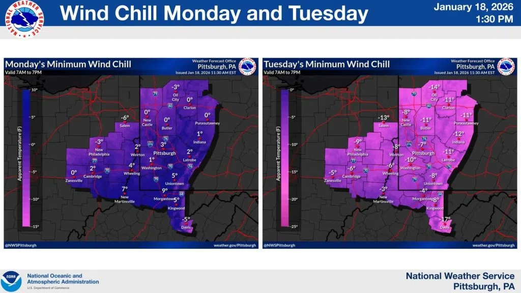 A Cold Weather Advisory has been issued from 9 PM Monday through noon Tuesday. A combination of cold temperatures and gusty wind will result in wind chills from 10 to 15 degrees below zero.