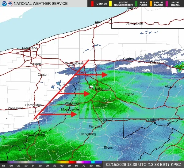 From the US National Weather Service The area of rain has already exited parts of eastern Ohio. The system will continue to move eastward with precipitation ending for most by 6PM.