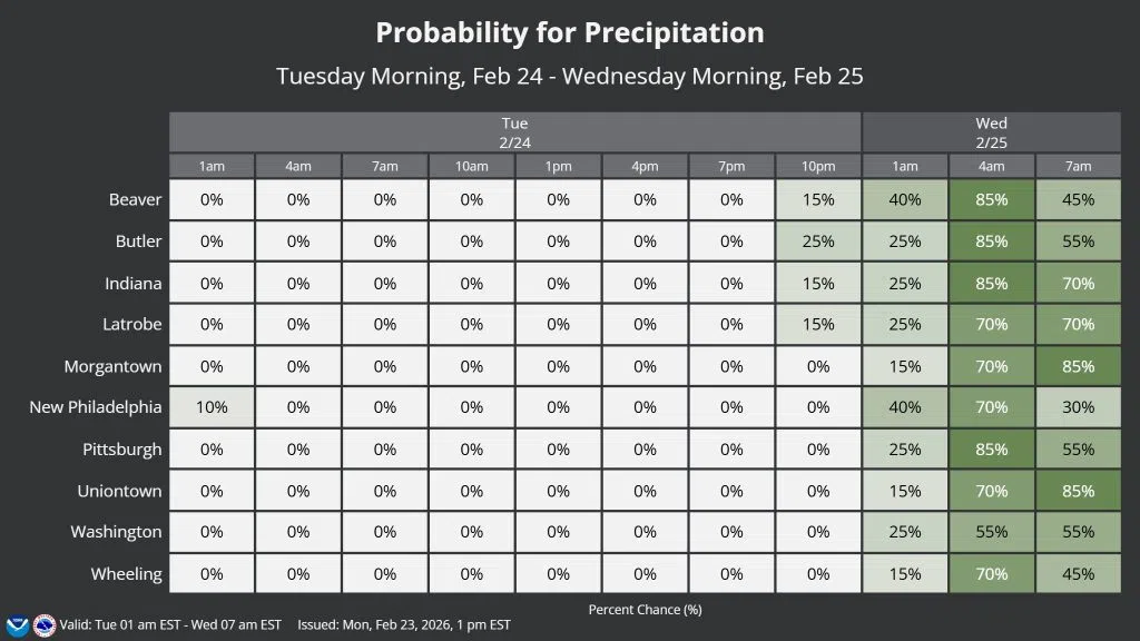 Tomorrow, there will be a brief reprieve from the precipitation with some added sunshine. By Tuesday night, another round of precipitation is expected to move in and last through Wednesday morning.