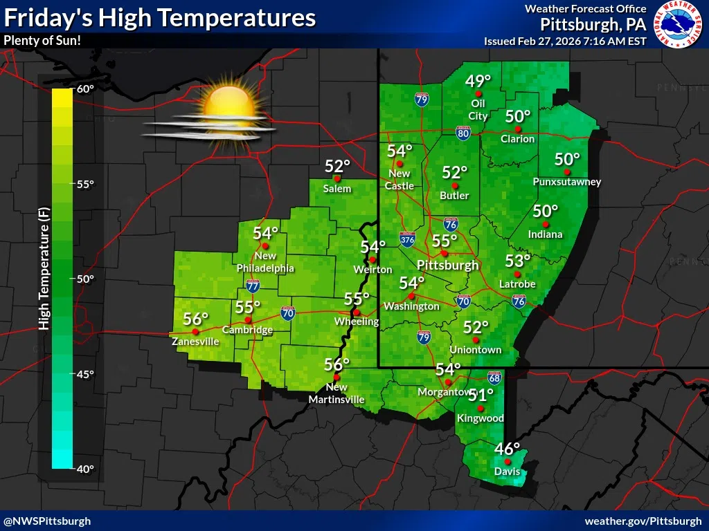 After these stubborn early morning clouds clear out, skies turn mostly sunny for the remainder of the day and very pleasant for late February.