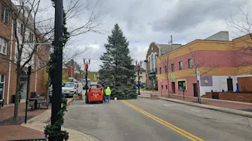 The tree that will be the centerpiece of Indiana's holiday season was put in place this morning at IRMC Park. (Workers from Don Huey help put the 40-foot tall tree in place at IRMC Park. Photo by Josh...