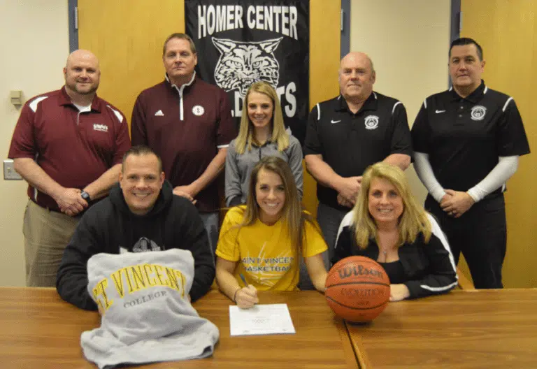 Homer-Center senior basketball standout Emily Worcester made her commitment to St. Vincent on Monday in a letter-signing ceremony at the Homer-Center School District administrative building. She was j...