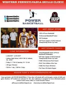Former IUP basketball standouts Jeremy Jeffers and Devonte Chance will be back in town to conduct a Power Basketball Clinic on Friday and Saturday this weekend at Indiana High School. The clinic is op...