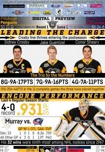 The Penguins open the NHL playoffs tonight at the PPG Paints Arena, hosting the Columbus Blue Jackets at 7:30 p.m. Pittsburgh finished in second place in the Metropolitan Division, while Columbus ende...