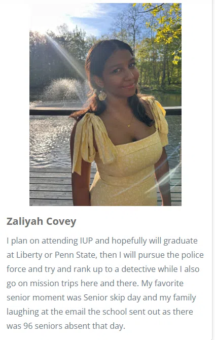 Congratulations to Zaliyah Covey, a 2025 graduate of Indiana High School! She is the winner of our Salute to the Class of 2025 feature and a $500 scholarship! Thank you to Hutton Blews Insurance and the YMCA of Indiana County as our primary sponsors as well as all the other sponsors for each individual school.